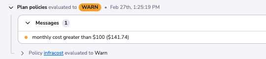 Specifically thinking of the Self-Service approach through blueprints, this is really handy for our users who arenβt familiar with IaC and code, however as it skips the PR element the benefits of infracost are somewhat diluted.