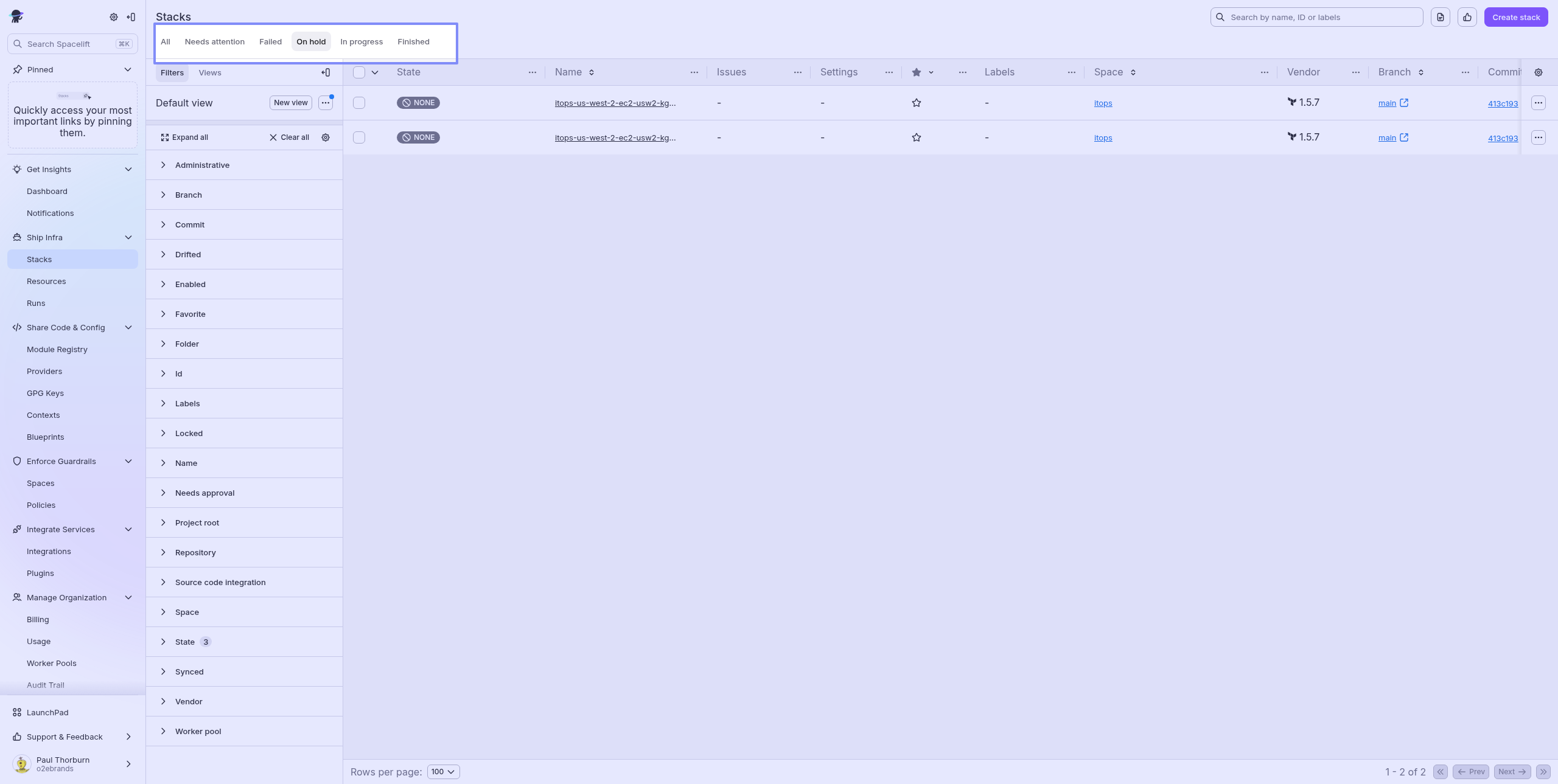 At the top of the Stacks UI it has a few tabs All, Needs attention, Failed, On Hold, In progress, Finished. There is no indication that a stack is in one of those states unless i click on that tab or filter by the state on the left side. Would be handy to see the number of stacks that are in each state similar to terraform cloud.